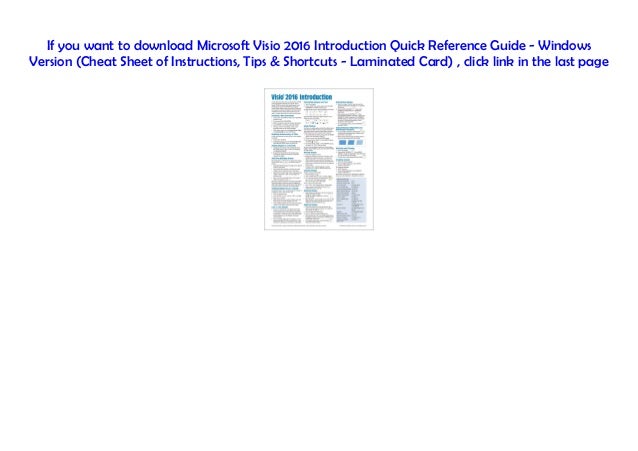 Microsoft Visio 16 Introduction Quick Reference Guide - Windows Version (Cheat Sheet of Instructions, Tips & Shortcuts - Laminated Card).pdf Size:. Microsoft Visio 16 Step by Step is designed for use as a learning and reference resource by home and business users of Microsoft Office programs who want to use Visio to create a variety of diagrams for business and personal use. A Quick Start Beginner's Guide For The.